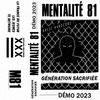 Le groupe Mentalité 81, originaire de Brest est composé de Jacky et Fab. Enregistrée dans l’urgence, en seulement deux jours, cette démo contient trois titres incisifs et énervés dans la veine des titres rapides de Syndrome 81. Le premier titre "La France du Futur" dresse un constat alarmant de notre société actuelle et de son évolution, tandis que le second titre "Les Jeunes" met en lumière la jeunesse actuelle et ses difficultés avec le refrain "Génération sacrifiée" qui donne son titre à la démo. La troisième chanson, Te Détruire , aborde la difficulté de voir une personne chère sombrer dans l'autodestruction, et est un appel à l'action pour une société qui semble tourner le dos à ses membres les plus vulnérables. Cette démo ravira sans aucun doute tout fan de punk hardcore et de musique qui a du sens.